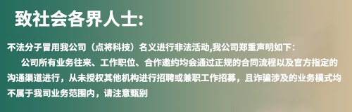 點將(上海)科技股份有限公司近期發(fā)現有不法分子冒用點將科技名義,偽造官方文件、資料、社群、APP等手...